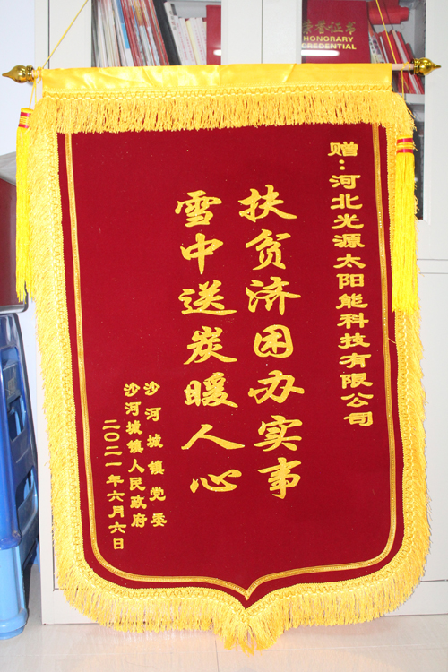 今天光源送給農民壁掛爐,鎮黨委政府送來錦旗。錦旗上褒揚光源的14個大字就是余香:“扶貧濟困辦實事,雪中送碳暖人心”。這余香是鼓勵也是激勵,是褒揚也有希望。它鼓勵光源人要多做雪中送碳的人,激勵光源人多做扶貧濟困的事兒。光源人不會辜負這面錦旗。