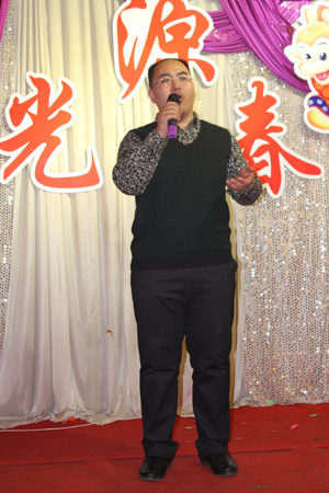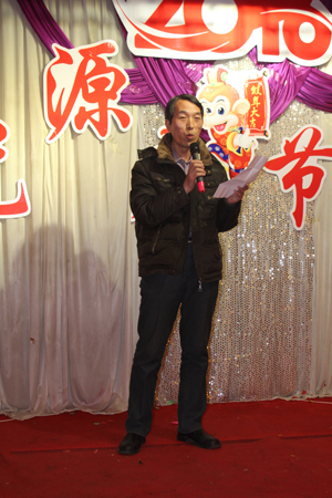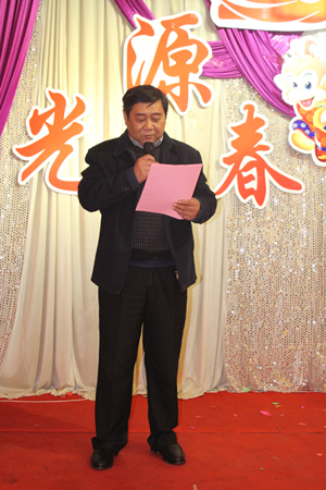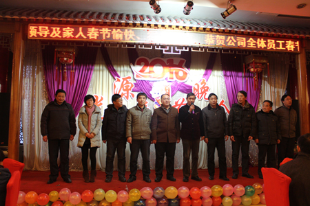 晚會開始前,董事長李成彬首先致辭。在致辭中,李成彬向全體員工恭賀新春,對2015年工作進行了回顧,對2016年工作進行了展望和描繪。接著,公司領導李成彬、劉迎波、邵東坤、李友民一起上臺向大家拜年。公司各部門經理一起上臺給大家拜年。恭祝大家新年快樂,猴年大吉,闔家歡樂,萬事如意。