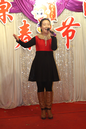 先登臺表演的是真空管車間高合英,她給大家帶來的歌曲是《歡樂中國年》。本次晚會共有歌曲、戲劇、武術等19個節目一展風采,演出中掌聲不斷,氣氛熱烈。叫好者不絕于耳,更有職工親友團的節目演出令人振奮不已。充分顯示了光源一家親的熱烈氣氛。