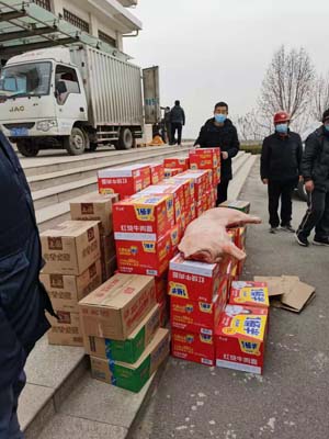 突如其來的新冠肺炎疫情襲擊了邢臺,建設隔離點成了一項重要任務,建設工人24小時晝夜不停施工。光源太陽能董事長李成彬得到這一信息,立即派光源黨支部書記李友民、副總經理李楊,攜帶價值1.5萬元的方便面、火腿腸、榨菜、生鮮豬肉,到醫專和醫養中心隔離點建設一線,慰問一線建設工人。