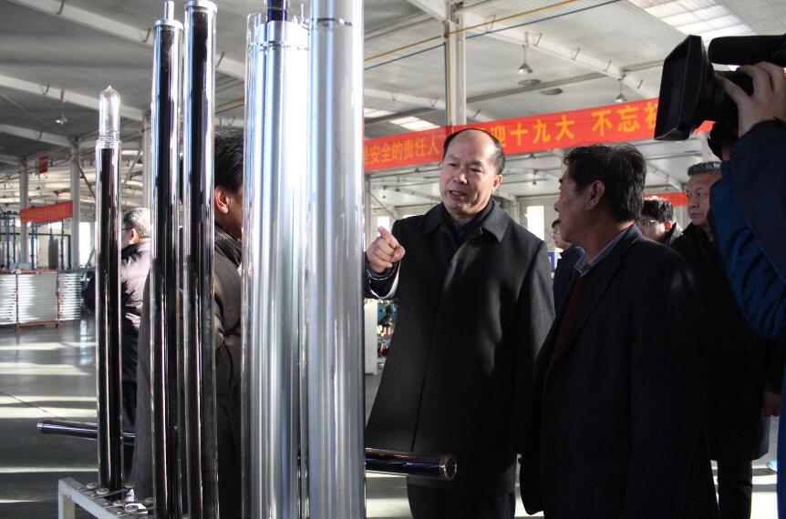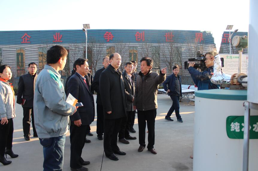 1月8日,在邢臺市委書記王會勇帶領下,邢臺市及開發區有關負責同志,來到河北光源太陽能科技有限公司,就太陽能光熱產品的制造工藝、產品性能及新能源項目實施等工作進行了深入了解和考察。