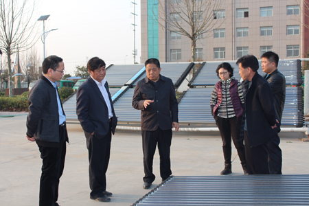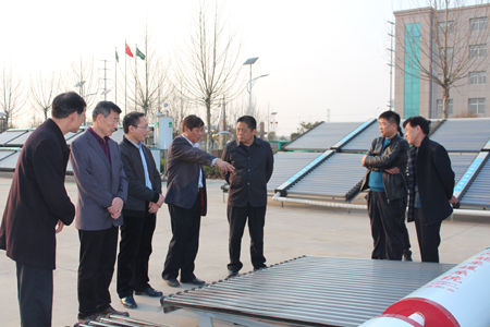 聽(tīng)取“太陽(yáng)能采暖系統(tǒng)”性能講解 周寶戰(zhàn)(左三)