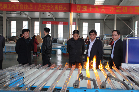 參觀公司壁掛爐車(chē)間 周寶戰(zhàn)(右一)