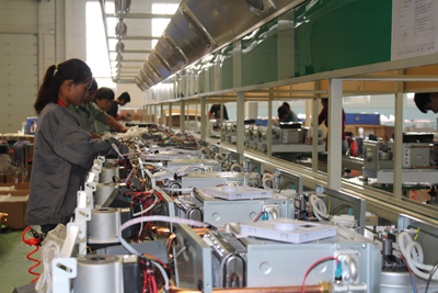 生產車間:不斷改進工藝,合理安排人員,逐步提高生產效率,電鍋爐日生產能力由150臺提高到了400臺。壁掛爐日產可達300臺。
