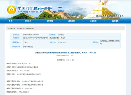10月23日,河北光源太陽能科技有限公司憑借完善細致的服務成功中標宣化區2019年農村電代煤供暖改造項目(第三批李家堡鄉、春光鄉)。中標喜訊紛至沓來,彰顯了本公司專業的施工實力與良好的市場口碑。