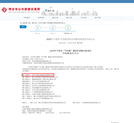 "煤改氣"是當下我國政府在改善空氣質量的民生重點工程,各地區政府在項目招投標的過程中對產品能效、品牌實力和售后服務進行嚴格篩選,只有在市場表現上品質最可靠、運行最穩定、服務最專業的產品方能入圍。光源公司在2020年寧晉縣“氣代煤”壁掛爐采購安裝項目招標中以第一候選人:河北光源太陽能科技有限公司優異成績拔得頭籌。