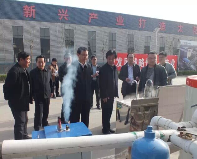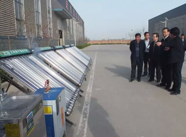 調(diào)研組先后考察了光源太陽能內(nèi)聚光減容太陽能中高溫集熱管、太陽能集熱管全自動(dòng)數(shù)控五連鍍生產(chǎn)線、反向積放臥式發(fā)泡水箱生產(chǎn)線、超大恒溫熟化室,對(duì)光源太陽能中高溫利用項(xiàng)目成果高度評(píng)價(jià)。來到熱水器車間,看到熱火朝天的忙碌生產(chǎn)場景,全機(jī)械化,自動(dòng)化制桶流水生產(chǎn)線,書記喜笑顏開。走出廠房,在光源開水機(jī)系統(tǒng)前,驚訝我公司在中高溫領(lǐng)域取得的成就,贊揚(yáng)在這一領(lǐng)域光源太陽能已走在行業(yè)前列。聽到董事長李成彬先生對(duì)于光源先進(jìn)的發(fā)展及今后的規(guī)劃,給予了高度的肯定,明確指出光源太陽能給邢臺(tái)其他公司樹立了榜樣,走科技創(chuàng)新,自主研發(fā)的路子,前途不可限量。希望光源公司不斷開拓進(jìn)取,早日上市。