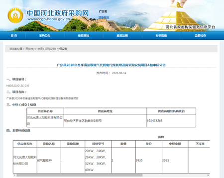 廣宗縣2020年冬季清潔取暖氣代煤電代煤新增設備采購安裝項目